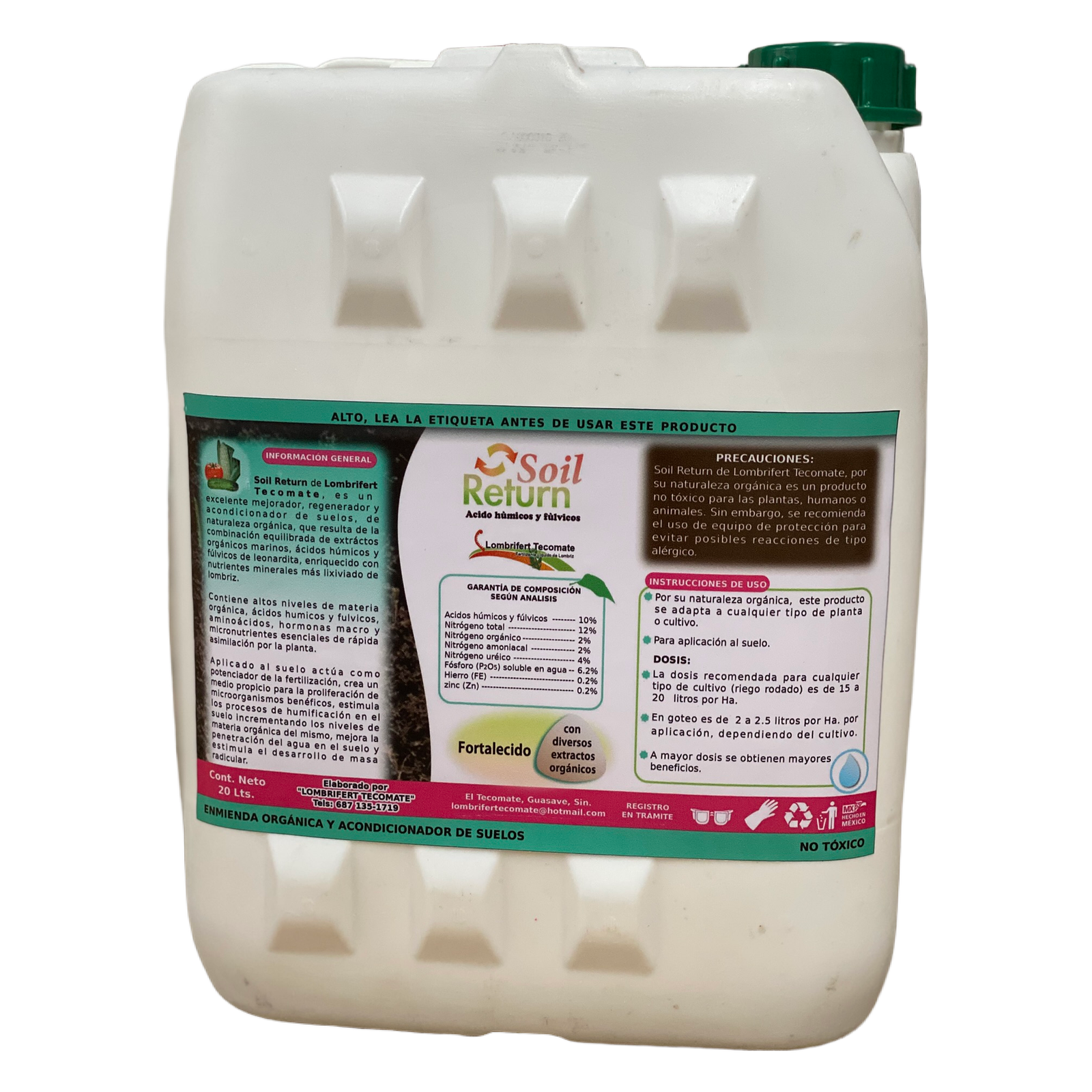SOIL RETURN de Lombrifert Tecomate es la solución avanzada que estabas esperando. Este bioestimulante orgánico-mineral de última generación está diseñado específicamente para revitalizar suelos agrícolas degradados, activando su microbiología natural y restaurando su fertilidad intrínseca.